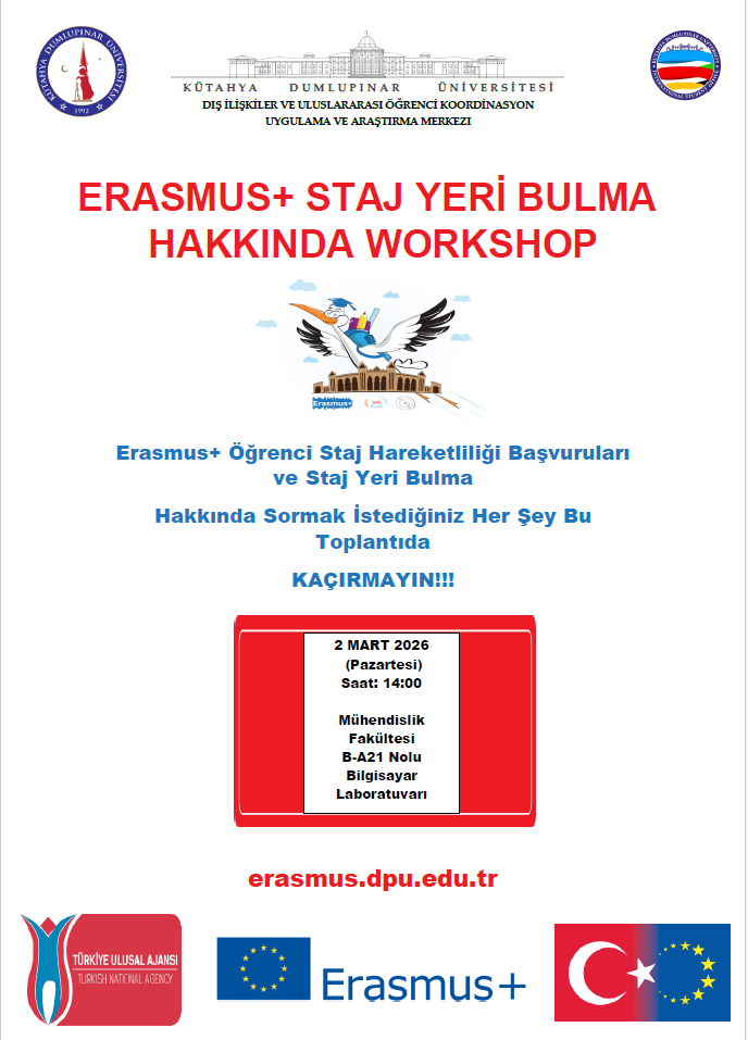 Üniversitemiz öğrencilerine yönelik olarak, Erasmus+ Staj Hareketliliği programı hakkında kapsamlı bir bilgilendirme workshop’u düzenlenecektir.